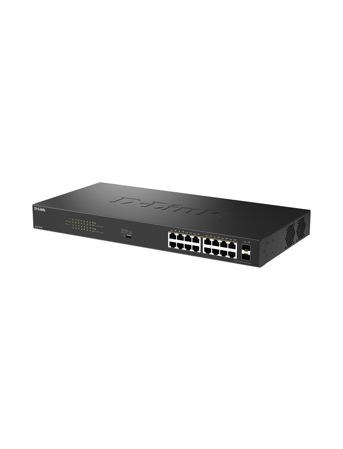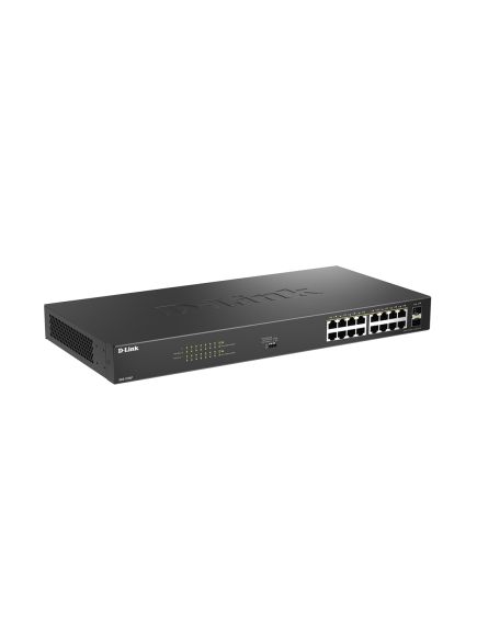 Коммутатор , D-Link, DGS-1018P/B1A, Конфигурируемый, 16 портов PoE 802.3af/at 10/100/1000Base-T, 2 порта 1000Base-X SFP, DIP-переключатели, PoE‑бюджет 240 Вт