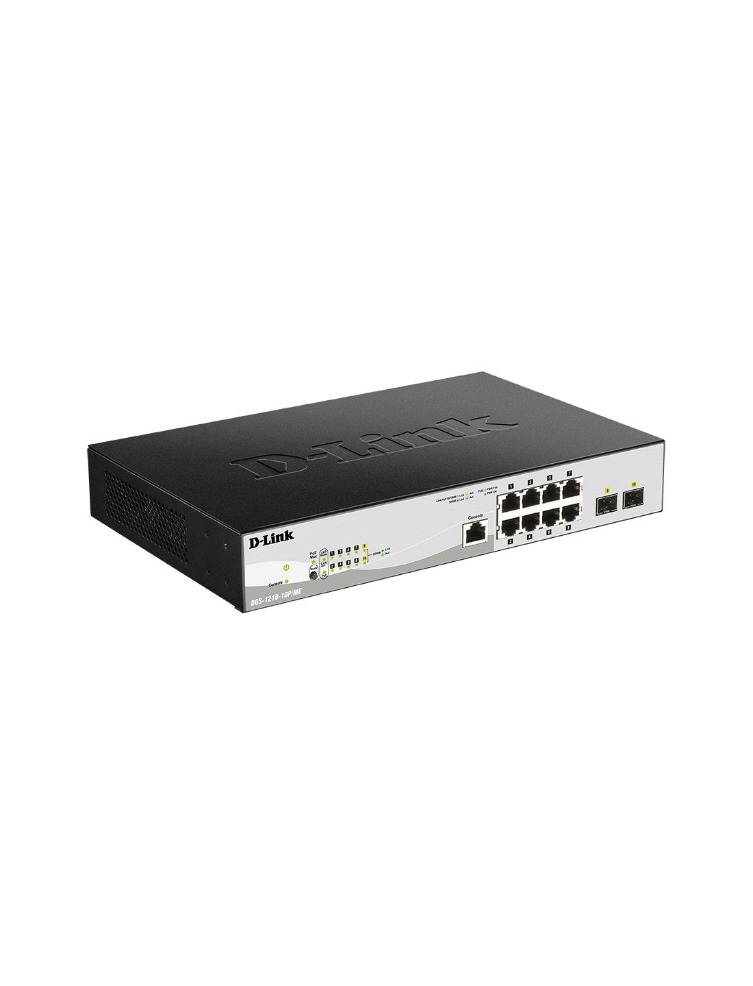 Коммутатор, D-Link, DGS-1210-10/ME/B2A, Управляемый, 8 портов 10/100/1000М RJ-45 + 2 порта SFP, Корпус металл, 1U