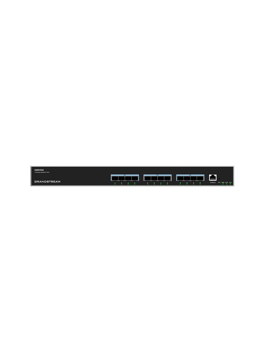 Коммутатор Grandstream GWN7832 — это управляемый коммутатор 3-го уровня, который позволяет средним и крупным предприятиям создавать масштабируемые, безопасные, высокопроизводительные и интеллектуальные бизнес-сети, полностью управляемые. Он имеет 12 гигабитных порта SFP+ с максимальной коммутационной способностью 128Гбит/с. Он поддерживает расширенные VLAN для гибкой и сложной сегментации трафика, расширенные возможности QoS для приоритизации сетевого трафика, отслеживание IGMP/MLD для оптимизации производительности сети и комплексные функции защиты от потенциальных атак. GWN7832 можно управлять несколькими способами, включая локальный Web пользовательский интерфейс коммутатора GWN7832 и CLI, интерфейс командной строки. А также поддерживается GWN.Cloud и GWN Manager, облачной и локальной платформой управления сетью Grandstream. Благодаря комплексному качеству обслуживания и гибким настройкам безопасности GWN7832 является лучшим управляемым коммутатором корпоративного уровня для среднего и крупного бизнеса.
