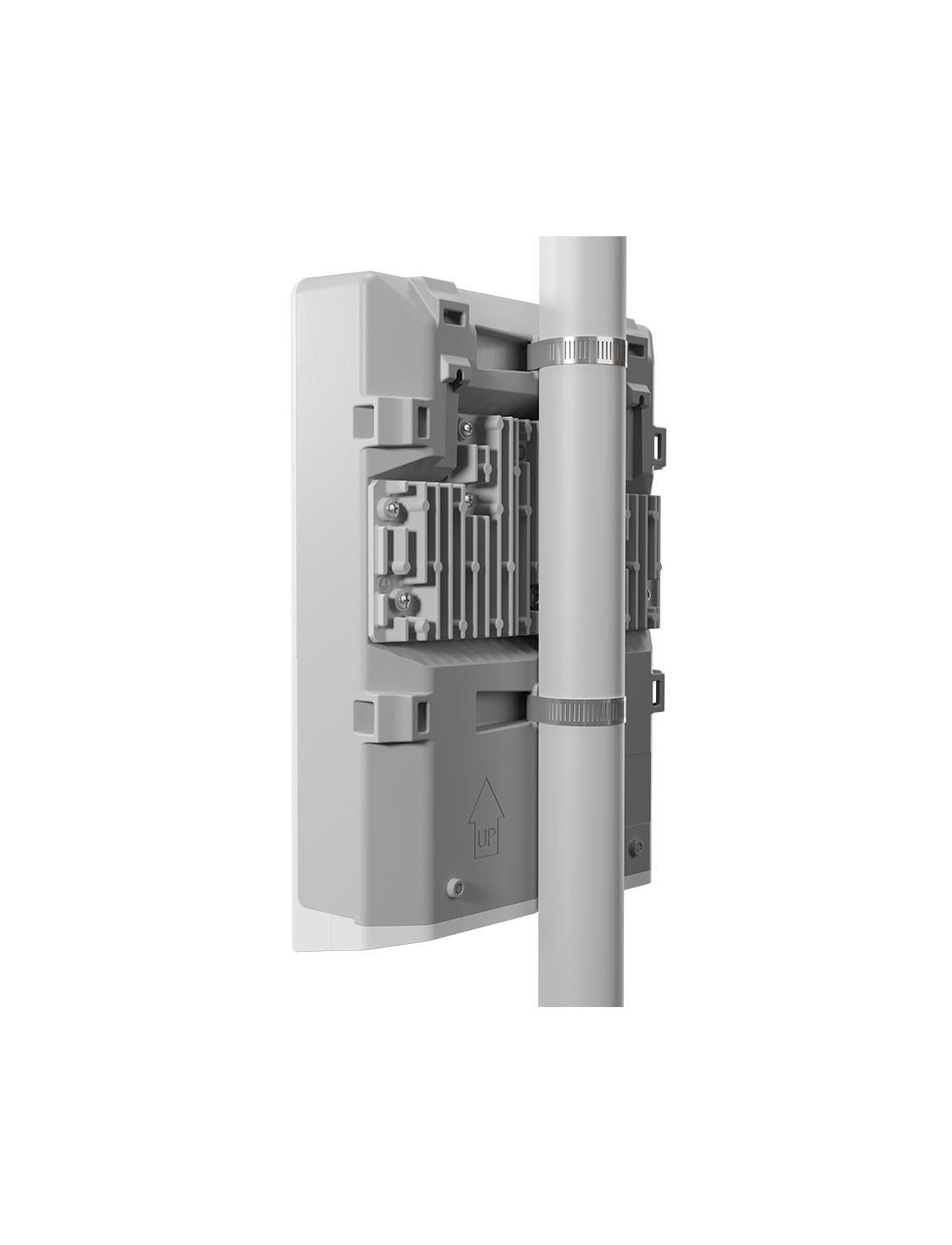Прочный корпус защищает интерфейсы и электронные блоки от пыли и брызг воды. Массивный радиатор на тыльной стороне обеспечивает эффективное рассеивание тепла, а также служит для смещения центра тяжести при различных вариантах монтажа с сохранением необходимой устойчивости. В комплект поставки входят металлические хомуты и винты для монтажа к столбу или стене.
