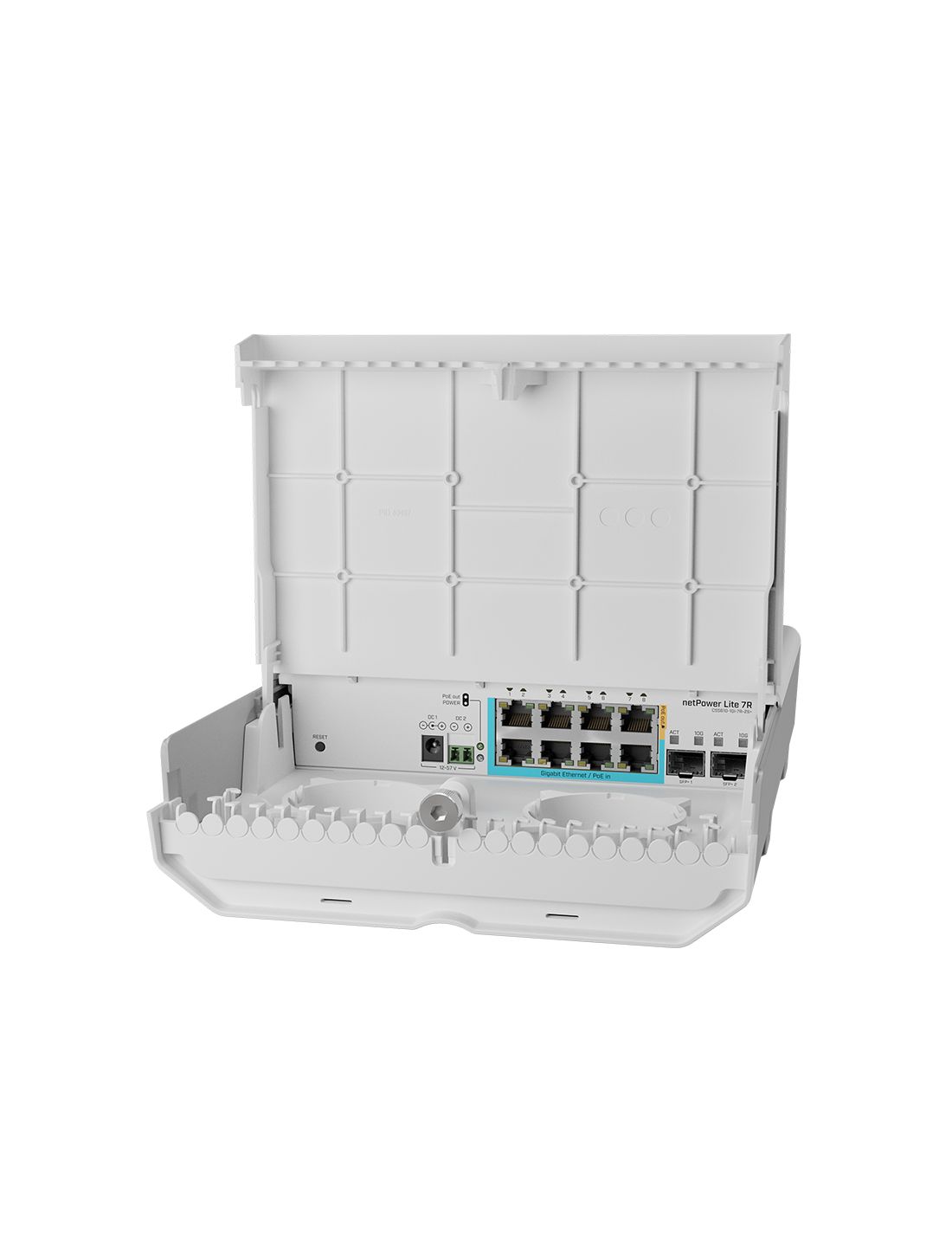 Коммутатор MikroTik netPower Lite 7R - это сетевое устройство с 8 портами RJ45 GbE и 2 разъёмами SFP+, реализующее концепцию GPEN, предназначенную для обеспечения высокой пропускной способности и универсального применения оптоволоконных соединений при использовании максимальных возможностей Ethernet. Модель представляет собой компонент доступного варианта подключения квартир к Интернету. Функционал коммутатора позволяет заменить базовые станции GPON и оптические разветвители.