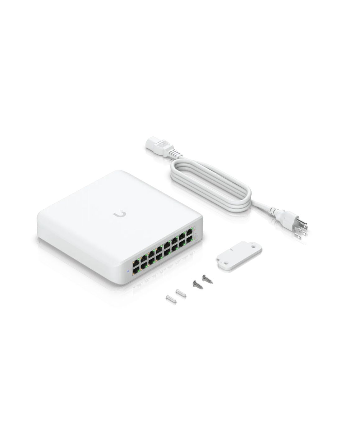 Коммутатор UniFi Switch Lite 16 PoE получил 16 гигабитных RJ 45 портов, которые предназначены для подключения абонентского оборудования. При этом 8 портов способны раздавать питание внешним потребителям. Специально для этого модель получила мощный блок питания, на 60 ватт, который позволяет раздавать вовне до 45 ватт (15 ватт тратятся на энергоснабжение самого свитча) Доступна функция автоопределения 802.3at PoE +.